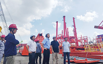 ▲圖為公司黨委書記、執(zhí)行董事、總經(jīng)理黃生湘(右三)一行察看碼頭現(xiàn)場(chǎng)情況